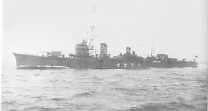 Hamakaze was heavily involved in the fighting in 1943 in the Solomon Islands chain, including the battles of Kula Gulf, Kolombangara, and the 'Battle off Horaniu'. On 7 April 1945, Hamakaze escorted the battleship Yamato from the Inland Sea on her Operation Ten-Go attack on the Allied forces on Okinawa. She was sunk by aircraft of Task Force 58 and sank 150 miles (240 km) southwest of Nagasaki (30°47′N 128°08′E).[4]