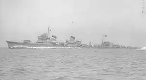 Ushio (潮, "Tide")[1] was the twentieth of twenty-four Fubuki-class destroyers that were built for the Imperial Japanese Navy following World War I. When introduced into service, these ships were the most powerful destroyers in the world.[2] They served as first-line destroyers through the 1930s, and remained formidable weapons systems well into the Pacific War. Ushio was one of only two of the 24 ships in its class to survive World War II, and it was also the only survivor out of the 22 combat ships involved in the Pearl Harbor assault force.