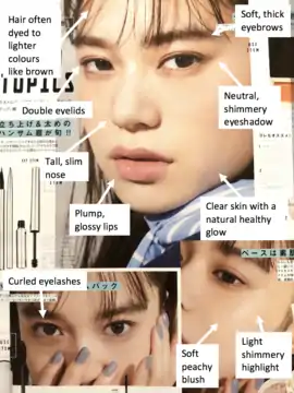 The commercialisation of beauty and cosmetics are a strong influence to the Japanese aesthetic ideals.[6] Some authors have also observed a sense of pan-Asian female identity in aesthetic ideals in cosmetic advertising, especially in the 21st century.[17]