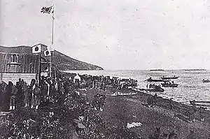 Japan and Russia had previously shared ownership of Sakhalin; however, the Japanese relinquished their claims in the 1875 Treaty of Saint Petersburg in exchange for undisputed sovereignty over all of the Kuril Islands. By 1904, Sakhalin had an estimated 30,000 inhabitants, including around 4,000 Ainu.[1] The island was used as a prison and a place of exile for political dissidents, and did not figure prominently in Russian strategic plans. The island was noted for its harsh climate, isolation, and the high level of corruption of its ruling bureaucrats, and consequently little investment was made in its defence.