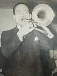 Local jazz practice, built around the performances of visiting Filipinos, began to emerge in the early 1920s, most notably in the prosperous entertainment districts of Osaka and Kobe. By 1924, the city of Osaka already boasted twenty dance halls, which gave many Japanese-born musicians an opportunity to play jazz professionally.[14] Trumpeter Fumio Nanri (1910–1975) was the first of these Japanese jazz performers to gain international acclaim for his playing style. In 1929 Nanri traveled to Shanghai, where he played with American jazz pianist Teddy Weatherford, and in 1932 he toured in the United States. After his return to Japan, Nanri made several recordings with his band Hot Peppers, an American-style swing band.[15]