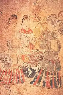 The earliest surviving paintings from this period include the murals on the interior walls of the Kondō (金堂) at the temple Hōryū-ji in Ikaruga, Nara Prefecture. These mural paintings, as well as painted images on the important Tamamushi Shrine include narratives such as jataka, episodes from the life of the historical Buddha, Shakyamuni, in addition to iconic images of buddhas, bodhisattvas, and various minor deities. The style is reminiscent of Chinese painting from the Sui dynasty or the late Sixteen Kingdoms period. However, by the mid-Nara period, paintings in the style of the Tang dynasty became very popular. These also include the wall murals in the Takamatsuzuka Tomb, dating from around 700 AD. This style evolved into the (Kara-e) genre, which remained popular through the early Heian period.