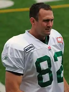 Clermont signed a contract with the Saskatchewan Roughriders on December 12, 2008, finally being afforded the opportunity to join his hometown team.[12] Although fans expected much from Clermont for the 2009 season, his role on offence was limited as he only caught 23 passes for 317 yards and was a healthy scratch for two games. His first touchdown for the Roughriders was scored on November 14, 2010, at the end of the first semifinal game of the season, taking Saskatchewan to a 41-38 victory against the BC Lions in double overtime. Clermont was named the CFL's Outstanding Canadian for the first week of the playoffs after his performance in the Western semi-final.[13]