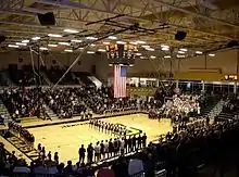 On May 2, 2011, the main gym collapsed due to a buildup of rainwater on the roof, causing the school to be temporarily closed. The school used the Cabby O'Neill Gymnasium, located near the courthouse on 6th street, Jasper, as a temporary replacement while a new gymnasium was built.[8] This was the first time the Cabby O’Neill had hosted Jasper High School athletic events since 1977.[9] The school rebuilt the gymnasium and an open house and dedication ceremony was held on September 20, 2013.[10] The new gymnasium has a seating capacity of 4,800.[5]