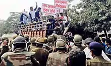 The Jat reservation agitation was a series of violent protests in February 2016 by the Jat people of North India, especially those in the state of Haryana, which "paralysed" the state for 10 days.[1] The protestors sought inclusion of their caste in the Other Backward Class (OBC) category, which would make them eligible for affirmative action benefits. Besides Haryana, the protests also spread to the neighbouring states, such as Uttar Pradesh,[2][3] Rajasthan,[4][5] and the National Capital Region.[6][7]