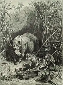 The Javan tiger was said to be strong enough to break legs of horses or water buffaloes with its paws.[11]