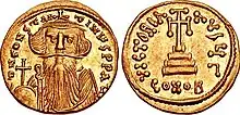In the same year, Juansher submitted to the Umayyad caliph Mu'awiya I (r. 661–680) after being summoned by him. In 667/68, Juansher was amongst the figures summoned by Mu'awiya I to seek counsel on how to assassinate Constans II, who was in Sicily at the time.[24] Juansher reportedly played an important role in the decision (Constans II was assassinated on 15 July 669), being in return rewarded with many gifts, and with Siwnik added to his domain. He was also offered rule of Adurbadagan, but declined and instead received one third of the tribute collected from Albania by the caliphate.[25] This marked the zenith of Juansher's rule. On 14 September 669, while celebrating the Feast of the Cross at Partaw, he was assassinated by a traitor named Varaznoy. The English historian James Howard-Johnston notes that this assassination, like that of Constans II, seemed to be "carefully planned."[26]