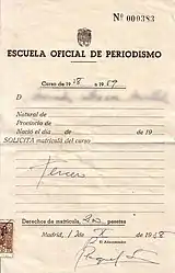 - Errea Iribas 2007, p. 56; for detailed discussion of the establishment, see Alicia Tapia López, Las primeras enseñanzas de documentación en periodismo, [in:] Documentación de las Ciencias de la Información 24 (2001), pp. 231-253