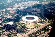 The Jawaharlal Nehru Stadium was constructed by the Government of India to host the 1982 Asian Games. A total of 3,411 athletes from 33 National Olympic Committees (NOCs) participated in these games, competing in 196 events in 21 sports and 23 disciplines. This was the first Asian Games to be held under the aegis of the Olympic Council of Asia. The stadium hosted the athletic events and opening and closing ceremonies. The capacity of the Jawaharlal Nehru Stadium was 78,000 during the games.[2] The stadium also hosted the 1989 Asian Championships in Athletics.[3]