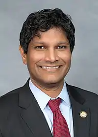 Jay Chaudhuri (born August 6, 1969) is an American attorney, professor, politician and a Democratic member of the North Carolina Senate. First appointed to fill a vacancy in April 2016 caused by the resignation of Josh Stein (to run for North Carolina Attorney General), Chaudhuri was later elected and re-elected, becoming North Carolina's first Indian-American state legislator.[5] In January 2019, he was elected by his colleagues to serve as Senate Minority (Democratic) Whip, the second-highest ranking position in the Democratic caucus.[6]