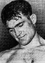 Prior to joining Marv Jensen's camp, Lambert won the Intermountain AAU tournament middle weight division in 1941 and heavy weight division in 1942. He went on to win the Intermountain AAU Championship in 1943; and was a two time Intermountain Intercollegiate champ and Intermountain AAU title holder.[3] In 1947, he won the Intermountain Golden Glove Heavy Weight championship and the Intermountain Intercollegiate Heavy Weight championship and was given the Outstanding Boxer award. In 1948, he won the Intermountain AAU title.[3] In 1948, at the age of 22, Lambert won the U.S Boxing Olympic Trials in the Boston Garden, Boston, Massachusetts securing a spot on the 1948 U.S. Olympic Team. Through three Olympic Trial tournaments, Lambert notched notable victories over Rex Layne, who would later go on to fight Rocky Marciano, Ezzard Charles, and Jersey Joe Walcott,[4] as a top professional heavyweight contender in the 1950’s, and Norvel Lee in the tournament's final; Lee would go on to win a gold medal as a light heavyweight in the 1952 Helsinki Olympics.[2] In London, Lambert fought his way to the quarterfinals before losing a split decision to Johnny Arthur of South Africa.
