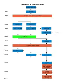 Jazz FM is a radio station broadcasting on digital radio in the United Kingdom and Malta which predominantly plays jazz music, jazz standards as well as blues and soul music. The station, in this incarnation set up by Richard Wheatley, traces its roots back to 102.2 Jazz FM, which first launched in 1990. The current station commenced broadcasting on 6 October 2008.[2][3]