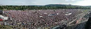 Je to na nás! (English: It is up to us!) was a political demonstration held on 23 June 2019, on Letná in Prague, part of a wider series of protests in the country. It was the biggest protest in the Czech Republic since the fall of Communism in 1989,[1] attended by around 250,000 people, many of them demanding the resignation of the Czech prime minister Andrej Babiš and his justice secretary Marie Benešová.[2] It was the 14th of 15 demonstrations held against Babiš and Benešová in spring 2019, organized by the Czech campaign association Milion chvilek pro demokracii.
