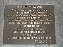 Jean-Baptiste Carrier (French pronunciation: [ʒɑ̃ batist kaʁje], 16 March 1756 – 16 December 1794) was a French Revolutionary and politician most notable for his actions in the War in the Vendée during the Reign of Terror. While under orders to suppress a Royalist counter-revolution, he commanded the execution of 4,000 civilians, mainly priests, women and children in Nantes, some by drowning in the river Loire, which Carrier described as "the National Bathtub."[2] After the fall of the Robespierre government, Carrier was tried for war crimes by the Revolutionary Tribunal, found guilty, and executed.