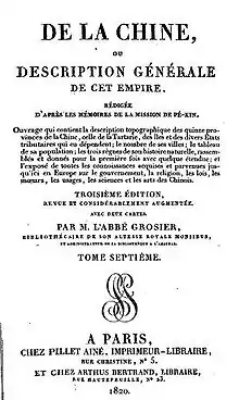 Jean-Baptiste Gabriel Alexandre Grosier (17 March 1743 – 8 December 1823) was a French abbé and critic of art and literature who published in 1788 his General Description of China.[1]