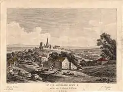 - View of part of the city of Rouen and the promenades of the old palace, from the faubourg Saint-Sever, drawing