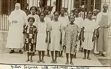 Coquard was made a chief by Alake Ademola and given the title Baasegun of Egba and later also named an Officer of the Order of the British Empire by the British Government.[5][6] In 1935, a new locomotive was named “the Jean-Marie Coquard” by the Nigerian government. A Memorial School was planned, but with the death of its chief proponent, Bishop O’Rourke, the school was named St. Peter's instead. In 1954, a life-size bronze statue was erected in front of the original hospital in Coquard's honor. The following day, a mass was held to repose his soul.[1]
