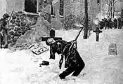Jean-Olivier Chénier (December 9, 1806 – December 14, 1837) was a physician in Lower Canada (present-day Quebec). Born in Lachine (or maybe Montreal).[1] During the Lower Canada Rebellion, he commanded the Patriote forces in the Battle of Saint-Eustache. Trapped with his men in a church by the government troops who set flames to the building, he was killed while attempting to escape through a window. He died to shouts of "Remember Weir!", a reference to George Weir, a government spy executed by the Patriotes.[2] The government forces mutilated Chénier's corpse to intimidate the remaining Patriote supporters: