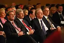 John James "Jean" Charest PC (French pronunciation: [ʒɑ̃ ʃɑʁɛ]; born June 24, 1958) is a Canadian lawyer and former politician who served as the 29th premier of Quebec from 2003 to 2012 and the fifth deputy prime minister of Canada in 1993. Charest was elected to the House of Commons in 1984 and would serve in several federal cabinet positions between 1986 and 1993. He became the leader of the Progressive Conservative (PC) Party in 1993 and remained in the role until he entered provincial politics in 1998. Charest was elected as the leader of the Quebec Liberal Party, and his party went on to form government in 2003.[1]
