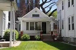 The Jean and Inez Bregant House, also known as The Little Peoples' House, is a historic building located in Council Bluffs, Iowa, United States. The Bregants were little people who worked as Vaudeville performers.[2] This 1½-story Craftsman was one of the few houses built in the United States for little people.[3] The rectangular frame structure sits at the back of its lot. The house was built by Inez's parents, whose house was immediately to the south, after Jean and Inez retired from performing. It features a polygonal bay on the north side, and rectangular bay on the south, and a full size bungloid porch across the front. The interior has four rooms and a bath. Because the Bregants loved to entertain, the rooms, doorways and furnishings accommodated full-size people.[3] However, it also had a miniature clawfoot bathtub, stove, a low fireplace mantel, built-in benches that sat low-to-the-ground, as well as other scaled-down details. After Inez died in 1969, the house was home to average sized people who undid some of its original details. It is now owned by Preserve Council Bluffs who is restoring it to its original condition. The house was listed on the National Register of Historic Places in 2013.[1]