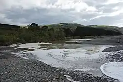 The Jed River is a river of New Zealand's South Island. It flows to the Pacific Ocean close to the town of Cheviot adjacent to Gore Bay. It combines with Buxton Creek behind a rocky beach before draining through the shingle. The waterways break through the rocks after heavy rain and establish a direct outflow into the sea.