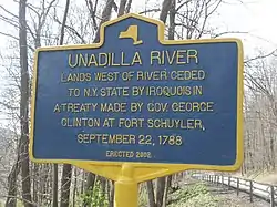 In March 1794, the New York State Legislature passed a law calling for the laying out and improvement of a public road from old Fort Schuyler (Utica) on the Mohawk River to the settlement of Canawaugus on the Genesee River, in as straight a line as the topography of the land would allow. Called the "Great Genesee Road",[48] it generally followed the old Iroquois trail to Oneida.[49]