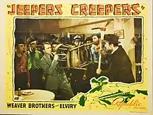 Jeepers Creepers is a 1939 American musical comedy starring Roy Rogers, with the popular hillbilly comedy troupe the Weaver Brothers and Elviry. Rogers plays a Sheriff in a town where a rich industrialist cheats a poor family out of their land when coal is discovered there.[1]
