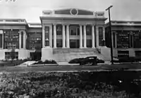 In 1933, Architect Stiles O. Clements was hired to build a 45-unit campus with a budget of $353,000.[7] The "Streamline Modern" building structures were completed in 1935. Ross Dickinson was selected and funded by Federal Art Project to paint four 11 feet by 5.5 foot murals with the theme "The History of Recorded Word". The murals were completed in 1937.[8]