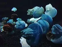 The jelly blubber (Catostylus mosaicus), also known as the blue blubber jellyfish, is a species of jellyfish from coastal regions in the Indo-Pacific. It is the most commonly encountered jellyfish along the Australian eastern coast and large swarms sometimes appear in estuarine waters.