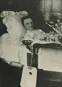 Casseday was a co-organizer of the Lying-In Hospital for Pregnant Women of Small Means which was established in 1882.[8] She founded a nursing school in Louisville in 1889.[18] The district nurse work owed its establishment to Casseday's philanthropy, an outgrowth of contact with the sick poor through the flower mission. The training school for nurses was successfully operated for several years. In speaking of the training school for nurses, established in Louisville, Casseday says: "It was born in my heart through the ministry of suffering and a longing to help others, as was my connection with the Shut-In Band." The members of the Shut-In Hand consisted of men, women and children who are shut in by disease from the outside world, and of invalids who seldom or never left their rooms or beds. The name was selected from the sixteenth verse of the seventeenth chapter of the Book of Genesis: "And the Lord shut them in." These invalids wrote to one another and had an official organ, the Open Window, which contained letters and news for invalids. This band grew from three members to many thousands, living in all parts of the world. Casseday took much interest in that work and wrote many letters to her invalid friends. Another philanthropy was the opening of Rest Cottage, as a country home for tired girls and women who have to support themselves. There they could obtain good comfortable board at US$1 a week and rest from their worries for a week or two, entertained by Casseday herself.[19]