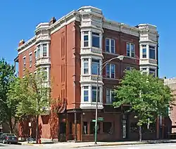 The Jennie Foley Building, also known as the Jennie Foley-Victor A. Arrigo Building, is a historic commercial and residential building located at 626-628 S. Racine Ave. in Chicago, Illinois. Built in 1889, the four-story building has a storefront on its first floor and six apartments on its upper stories. The brick building's design features hexagonal bay windows, a metal cornice decorated with scrolls and dentils, and belt courses between floors on the east facade. The building was one of many hybrid commercial and residential buildings constructed in the area, the center of Chicago's Sicilian community in the early twentieth century, though most such buildings have since been demolished. In 1910, the parents of prominent Chicago lawyer and politician Victor A. Arrigo purchased the building; Arrigo lived in the building until his death in 1973.[2]