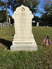 Shuttleworth married Susanna "Sukey" Richards on February 1, 1798, and they were the parents of four children, including Hannah, Sam, and Jerry.[1][2][3][lower-alpha 1] He was an incorporator of St. Paul's Church and served on the vestry.[4] His sister, Melitiah Shuttleworth, married Nathaniel Ames.[4][5]