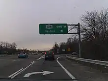 The northern end of the Seaford–Oyster Bay Expressway (NY 135) terminates at NY 25 in Syosset. NY 110 intersects at the 32.76 miles (52.72 km) mark, in South Huntington. NY 454 begins at an intersection with NY 25 in Commack.[7] Just after the NY 454 intersection, NY 25 meets the Sunken Meadow State Parkway by way of an interchange. NY 25A, a spur of NY 25, becomes concurrent with NY 25 in Smithtown.[8] In Village of the Branch, NY 25A leaves to the north where NY 111 intersects from the south. New York State Bicycle Route 25 (NYS Bike Route 25) also begins along NY 25A at this intersection.