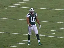 On September 10, in the season opener, Kearse made his Jets debut, recording seven receptions for 59 yards in the 21–12 loss to the Buffalo Bills.[43] In Week 2, against the Oakland Raiders, he had four receptions for 64 yards and his first two receiving touchdowns with the Jets, both coming from quarterback Josh McCown. His performance against the Raiders was only the second multi-touchdown game of his career.[44] During Week 12 against the Carolina Panthers, Kearse had 7 receptions for 105 receiving yards and a touchdown. He and fellow receiver Robby Anderson both had over 100 receiving yards in the same game in a Jets lost 35-27.[45] During Week 13 against the Kansas City Chiefs, Kearse had another outstanding performance, highlighted by a spectacular one-handed catch by the sideline boundary line and a 51-yard reception play later in the game. He finished the game with 9 receptions and 157 receiving yards as the Jets won 38-31.[46][47] Overall, in the 2017 season, he finished with 65 receptions for 810 receiving yards and five receiving touchdowns.[48]