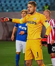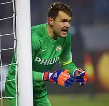 In the 2016–17 season, Zoet started the season well when he helped the side beat Feyenoord 1–0 to win the Johan Cruyff Shield.[74] He then got off with a winning start for the side by keeping four clean sheets between 20 August 2016 and 10 September 2016.[75] On 10 September 2016, Zoet made his 100th league appearance for PSV Eindhoven against N.E.C., in a 4–0 win, earning his fourth clean sheets.[76] He then started every match until he suffered a muscular problem that saw him out for a month.[77] It wasn't until on 19 November 2016 when Zoet returned to the starting lineup from injury, in a 0–0 draw against Willem II, earning his fifth clean sheet of the season.[78] In a follow up match against Atlético Madrid in the UEFA Champions League Group Stage on 23 November 2016, Zoet captained the side for the first time this season, in a 2–0 loss.[79] He then kept two clean sheets in two matches between 3 December 2016 and 10 December 2016.[80] By the end of 2016, Zoet conceded seven goals in the last fourteen matches.[81] Throughout the 2016–17 season, Zoet expressed his optimism that the club would win the league for the third time in a row.[82] He was at fault during a match against Feyenoord on 26 February 2017, conceding an own goal, which turned out to be a winning for the opposition team, as they won 2–1.[83] Despite this, Zoet continued to remain as the club's first choice goalkeeper and redeem himself by keeping another two clean sheets in two matches between 18 March 2017 and 1 April 2017.[84] However, the club failed to defend the title, ending their two seasons defence after they finished third place in the league.[85] At the end of the 2016–17 season, Zoet went on to make thirty–seven appearances (playing thirty–one times in the league) in all competitions.