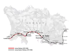 ![]() The Jersey Railway highlighted on a map of former railways of Jersey | |