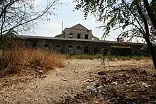 The Jerusalem railway station (Hebrew: תחנת הרכבת ירושלים, Tahanat HaRakevet Yerushalayim; Arabic: محطة قدس شريف[1]), also known as the Jerusalem–Khan railway station (Hebrew: תחנת הרכבת ירושלים – החאן, Tahanat HaRakevet Yerushalayim–HaKhan; Arabic: محطة أورشليم – الخان) after the caravanserai building, now the Khan Theater located across the road, to differentiate it from the Jerusalem–Malha and Jerusalem–Yitzhak Navon stations opened after its closure, is a historic railway station in Jerusalem, located between Hebron Road and Bethlehem Road, near the German Colony. It was part of the Jaffa–Jerusalem railway until its closure in 1998.