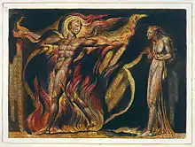 Jerusalem, subtitled The Emanation of the Giant Albion (1804–1820, with additions made even later), is a prophetic book by English poet William Blake. Jerusalem is the last, longest and greatest in scope of Blake's works. Etched in handwriting, accompanied by small sketches, marginal figures and huge full-plate illustrations, it has been described as "visionary theatre". The poet himself believed it was his masterpiece and it has been said that "of all Blake's illuminated epics, this is by far the most public and accessible".[2] Nonetheless, only six copies were printed in Blake's lifetime and the book, like all of Blake's prophetic works, was all but ignored by his contemporaries.