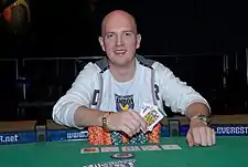 ![]() Hougaard after winning Event #36 at the 2008 World Series of Poker | |