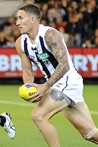 Despite his improved performances and Sydney's attempts to re-sign him, he moved to Collingwood in a three-way trade with Sydney, Collingwood and the West Coast Eagles.[6] On 10 August 2017, White announced his retirement from AFL football at the end of the season.[7]