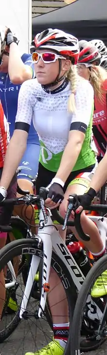 Jessie Walker (born 20 September 1994) is an English professional racing cyclist.[1] After riding for the Matrix Fitness Pro Cycling team for four seasons, she joined the RST Racing Team in May 2015.[2][3] However, in June 2015 she joined Servetto Footon for the remainder of the 2015 season.[4] In October 2016 she announced that she would take a break from racing in the 2017 season after her time with Servetto Footon, which she described as "frustrating" and "demoralising" due to a lack of support from the team, stating that she had not been paid by them, and had depended on financial support from the Dave Rayner Fund.[5] After splitting from Servetto Footon, she joined Team WNT as soigneur for 2017, before moving on to studying art and design at the end of the season.[6][7]