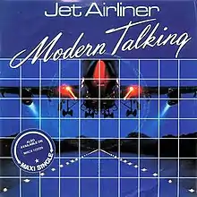 Jet Airliner is Modern Talking's first single from the fifth album Romantic Warriors. The single was released in Germany and in other European territories on May 18, 1987. "Jet Airliner" peaked at No. 7 in Germany on June 22, 1987, over one month after its release and spent four weeks within the top-10 and total of 11 weeks on the single chart.[1][2] While the single managed to enter the top-10 in Austria, it entered the top-20 in Switzerland and Sweden, meanwhile charting moderately in the Netherlands where it peaked at No.33.[3]