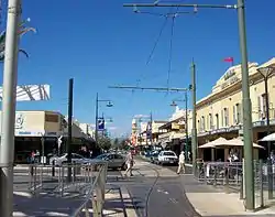 Jetty Road in Glenelg is a major tourism and retail precinct in Adelaide, South Australia. Starting from Brighton Road, it is almost 1 kilometre long.[1] At its western end is Moseley Square and the popular Glenelg beachfront.