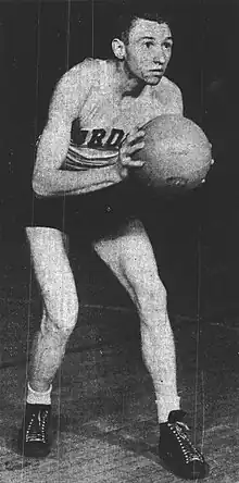 Following the completion of his collegiate career, Young played professionally with the Indianapolis Kautskys of the National Basketball League until the Kautskys ceased operations in 1942 due to World War II. Young played one season with the Oshkosh All-Stars in 1942–43, then completed his NBL career with the Kautskys in 1946.[2] In his five NBL seasons, he averaged 7.8 points per game.[1] He was the league Rookie of the Year in 1938-39 and was an NBL All-Star in 1938-39 and in 1941-42[3] He later became a high school coach for 17 years for Southport High School in Indianapolis.[4]