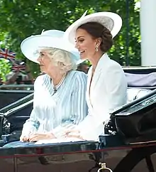 The tiara has since been loaned to Catherine, the wife of Prince William.[25] She first wore it to a diplomatic reception at Buckingham Palace in 2015, and has continued to wear it during state occasions.[26][27]