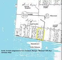 Hort's father, Abraham Hort Senior[14] saw New Zealand as a possible haven for impoverished English Jews and a potential refuge for oppressed Jews of eastern Europe and elsewhere.[15] The Jews' Hospital (Neveh zedak), which was largely funded by the Goldsmid family,[16] sponsored two Jewish women to emigrate in 1841 on the barque Birman: Elizabeth Levy, (sister of the Levy brothers), and Esther Solomon, who was being sent to marry one of the brothers.