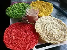 Jhilinga is a traditional Nepalese food specially popular during festivals.[1] Jhilinga is super crunchy, and is favored by people of all age groups.[2] It is closely associated with people of different ethnicity like the Gurungs, Newars, Magars, Brahmins.[3] Popularity of Jhilinga still largely exists in villages and towns of Nepal. The process of making Jhilinga is really simple requiring minimal ingredients. However, a good set of skilled hands is required to craft the pieces into proper circles.