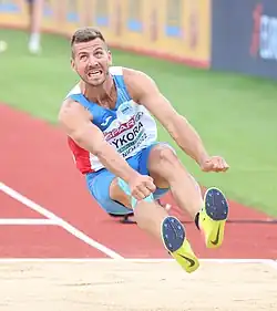 Jiří Sýkora (born 20 January 1995 in Třebíč) is a Czech athlete competing in the combined events.[3] He represented his country at the 2016 Summer Olympics in Rio de Janeiro where he finished last after scoring no points in the pole vault and 1500 metres. In addition he won the gold medal at the 2014 World Junior Championships. He is also the former world record holder in the junior decathlon.