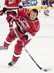 On 3 December 2009, during the 2009–10 season, Tlustý was traded to the Carolina Hurricanes in exchange for forward Philippe Paradis.[6] Tlustý scored his first goal for the Hurricanes on 11 December 2009, against the Washington Capitals in his first game for the club. On 1 July 2010, he signed a one-year, one-way contract with Carolina worth US$500,000. On 1 July 2011, Tlustý again signed a one-year, one-way contract with Carolina, this time worth US$525,000.[7]