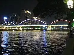 ![]() Jiefang Bridge at night, as viewed from the north bank of the Pearl River | |